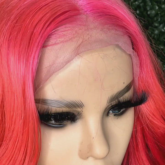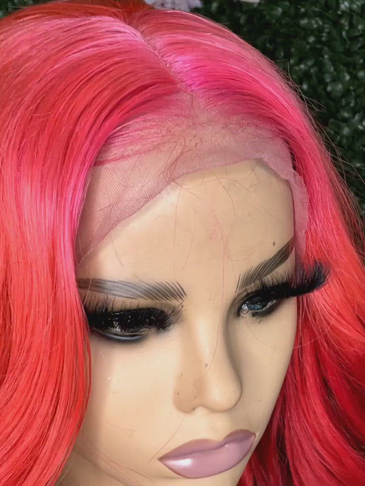 Bodywave, Hand Curls, 24 Inch, Custom Red, Orange, and Pink Color