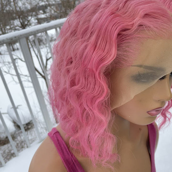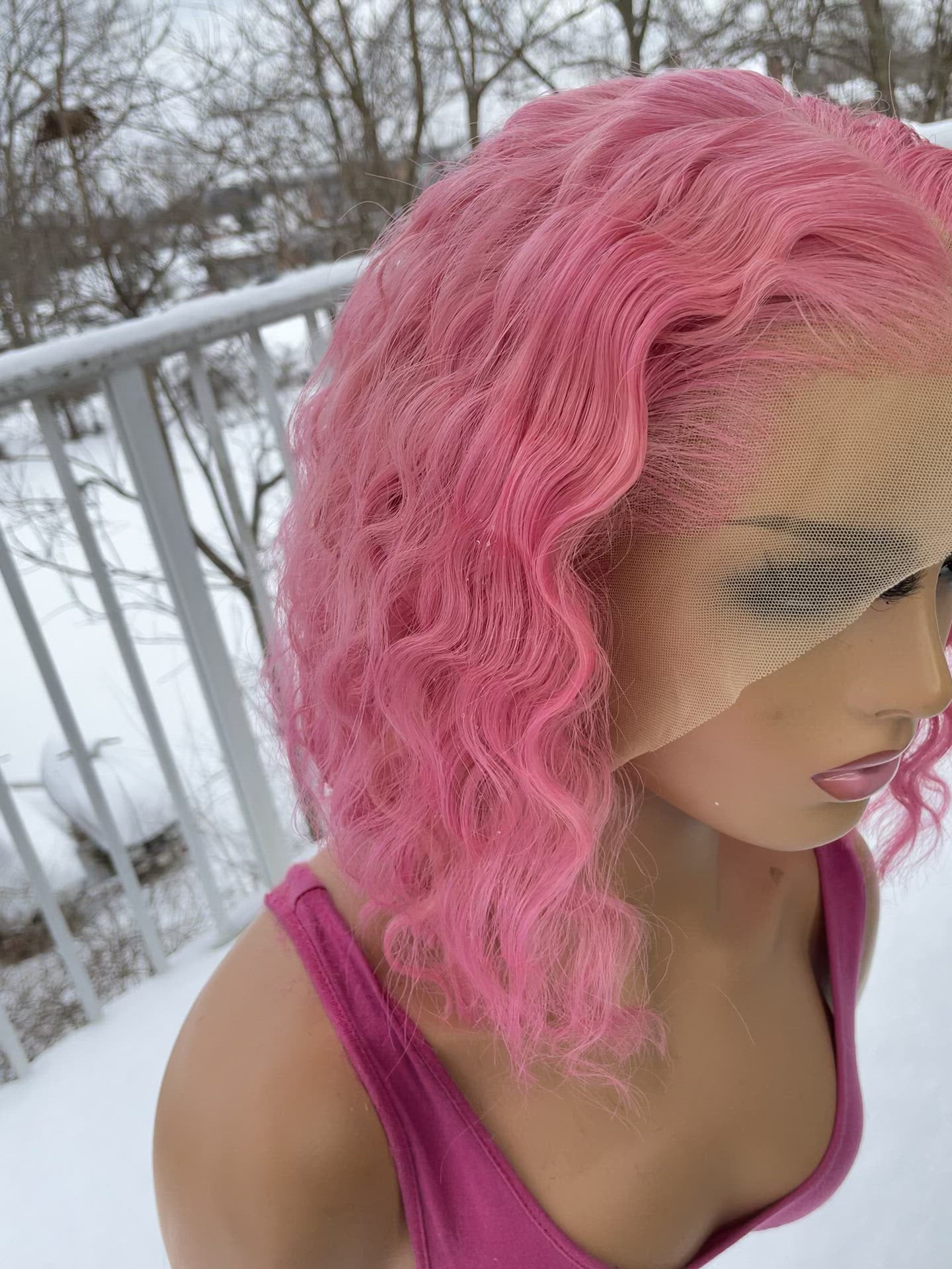 Bodywave, Crimped Bob, 14 Inch, Custom Pink Color